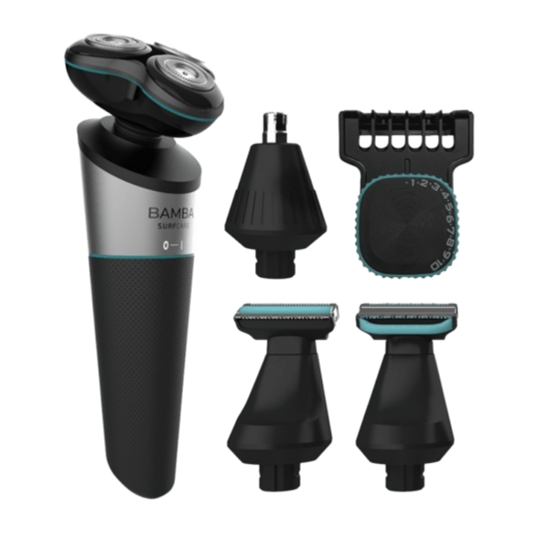 - 5in1. Diseño multifunción ideal para eliminar el vello, tanto de rostro como del cuerpo, gracias a su distintos cabezales y accesorios. Incluye un cabezal con tres cuchillas rotativas y ultraflotantes de afeitado, un cabezal para nariz y orejas, un cabezal para el afeitado de cara, guía de corte ajustable y un cabezal para el afeitado corporal con protección para pieles sensibles.
