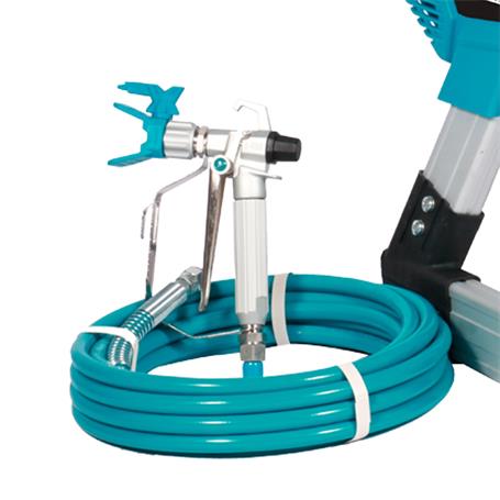 - Pulveriza una variedad de pinturas a base de aguas, a base de aceite, lacas, barnices y otros materiales no abrasivos.