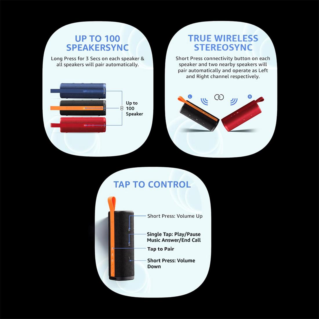 - Diseño Resistente. Con la certificación IP67, estos altavoces están protegidos del agua y el polvo, permitiendo su uso sin preocupaciones en la piscina, playa o montaña. Su malla frontal extragrande y diseño compacto garantizan portabilidad sin sacrificar el impacto sonoro.