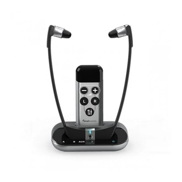 AURICULARES TV NEGRO/PLATA AMPLICOMMS