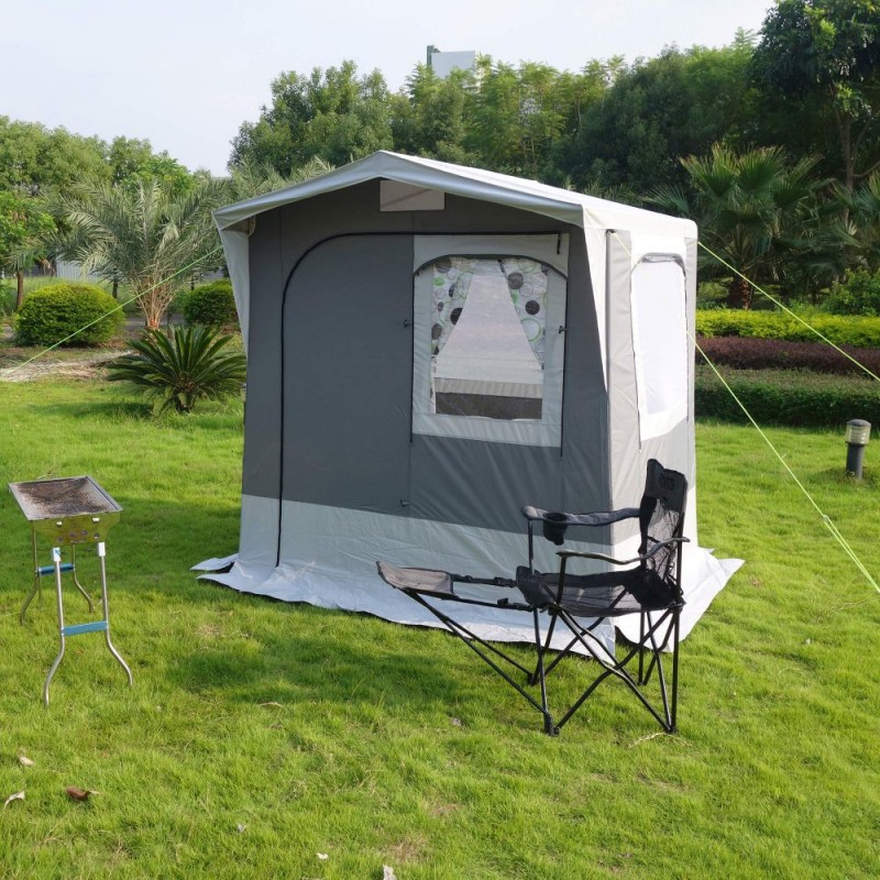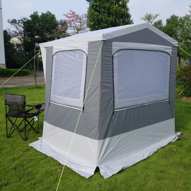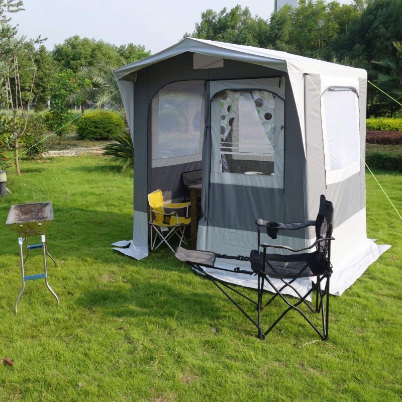 - Dos ventanas laterales y una posterior con mosquitera y cubre ventana con cremallera.