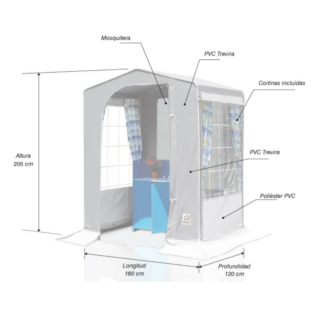 - Dimensiones: (Largo/Ancho/Alto) 160 x 120 x 205 cm