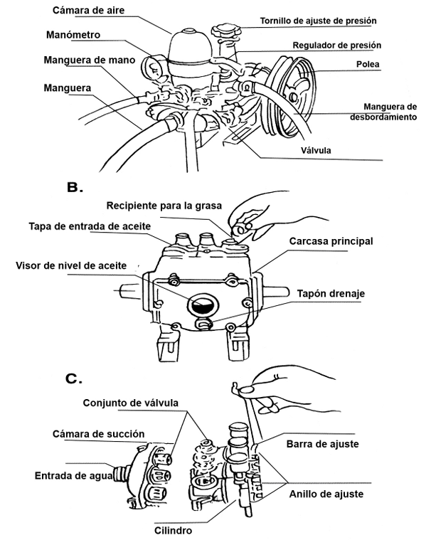 - 1. Reemplace el aceite del motor después de que la bomba haya sido utilizada por primera vez 10 horas y después 50 horas, y posteriormente cada 70 horas.