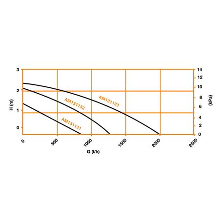 Potencia de 14.5W, caudal máximo de 800 l/h, altura máxima de 1.3 m.