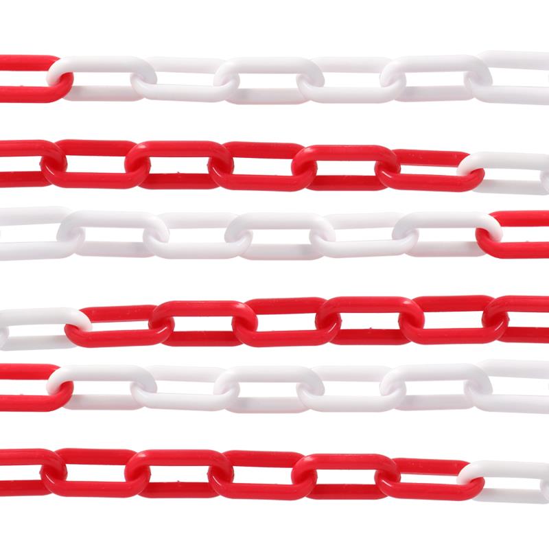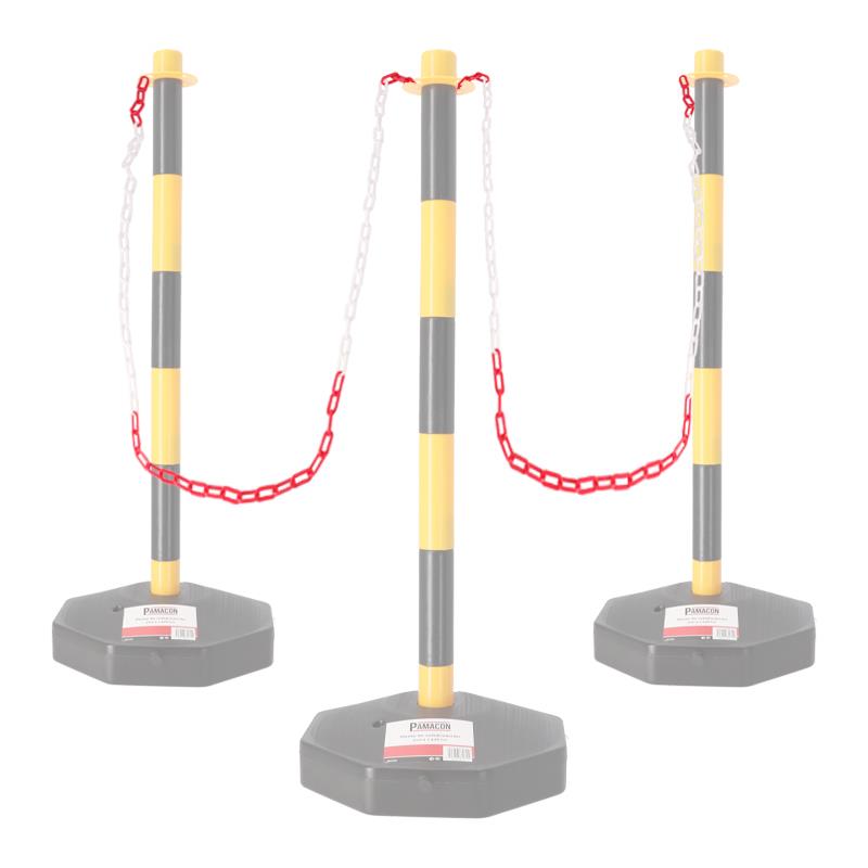 - Cadena bicolor fabricada en plástico, ideal para delimitar zonas de aparcamiento.