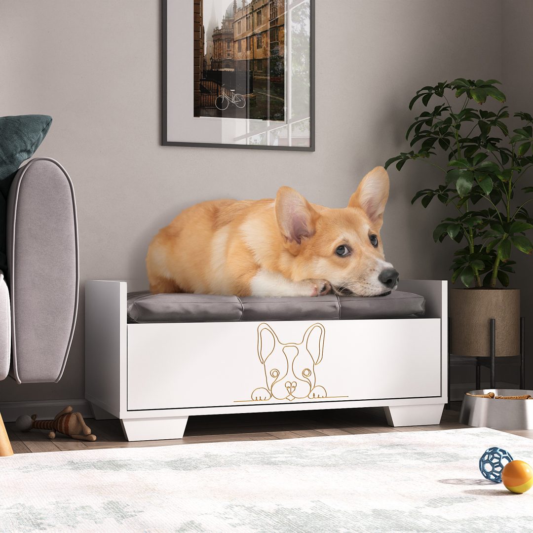 - Brinda a tu mascota el confort que se merece con este cajón blanco de alta calidad, diseñado especialmente para el descanso y bienestar de tu perro.