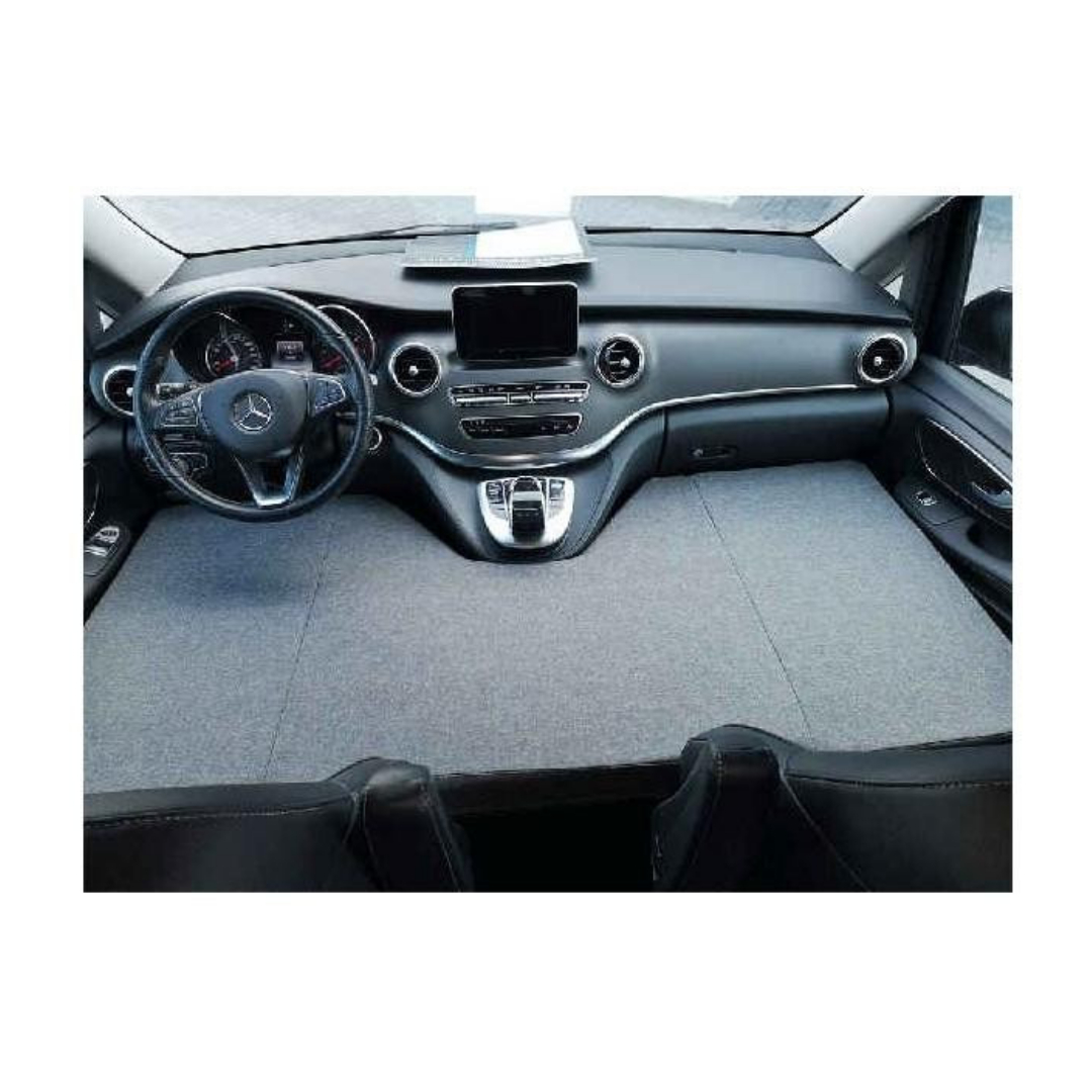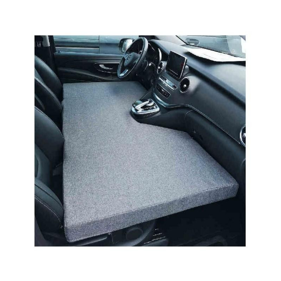 La cama adicional se ensambla en unos simples pasos: despliegue en la cabina, deslícela a su posición, ajuste los asientos delanteros hacia adelante tanto como sea posible, pase el cinturón del pasajero alrededor de la parte delantera de la cama y abróchelo para mayor resistencia.