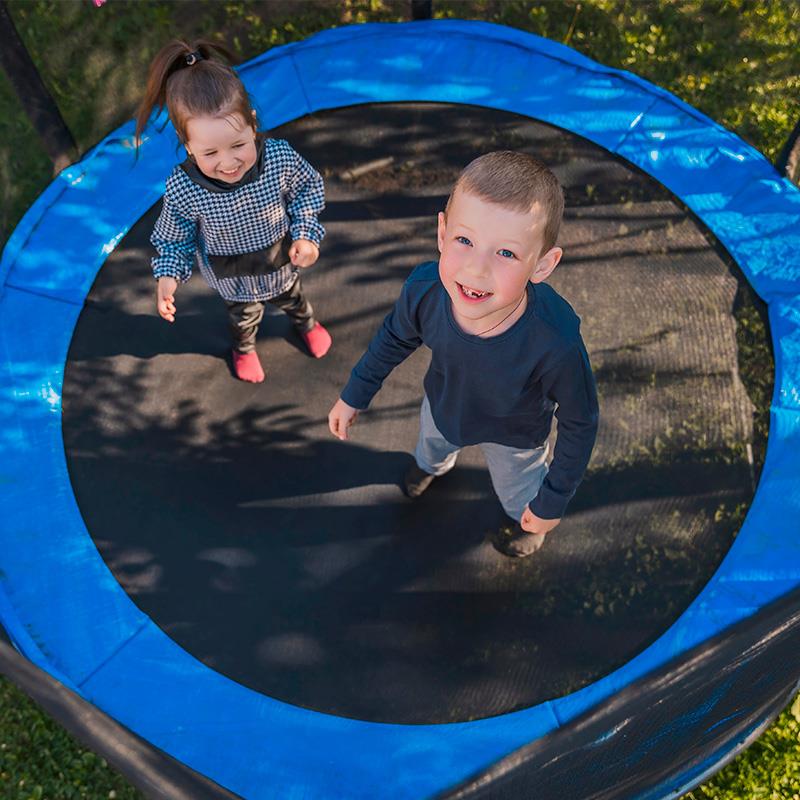 - Trampolín con acolchado firme de postes y red de seguridad.