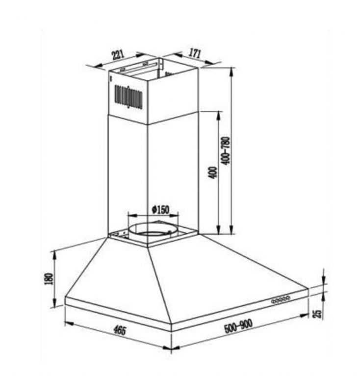 - Salida tubo (diámetro): 150mm.