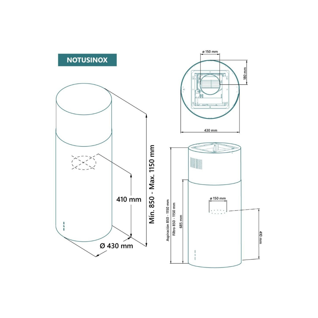 CAMPANA ISLA CILINDRICA NOTUS BLANCA 42C.603M3/H JOHNSON