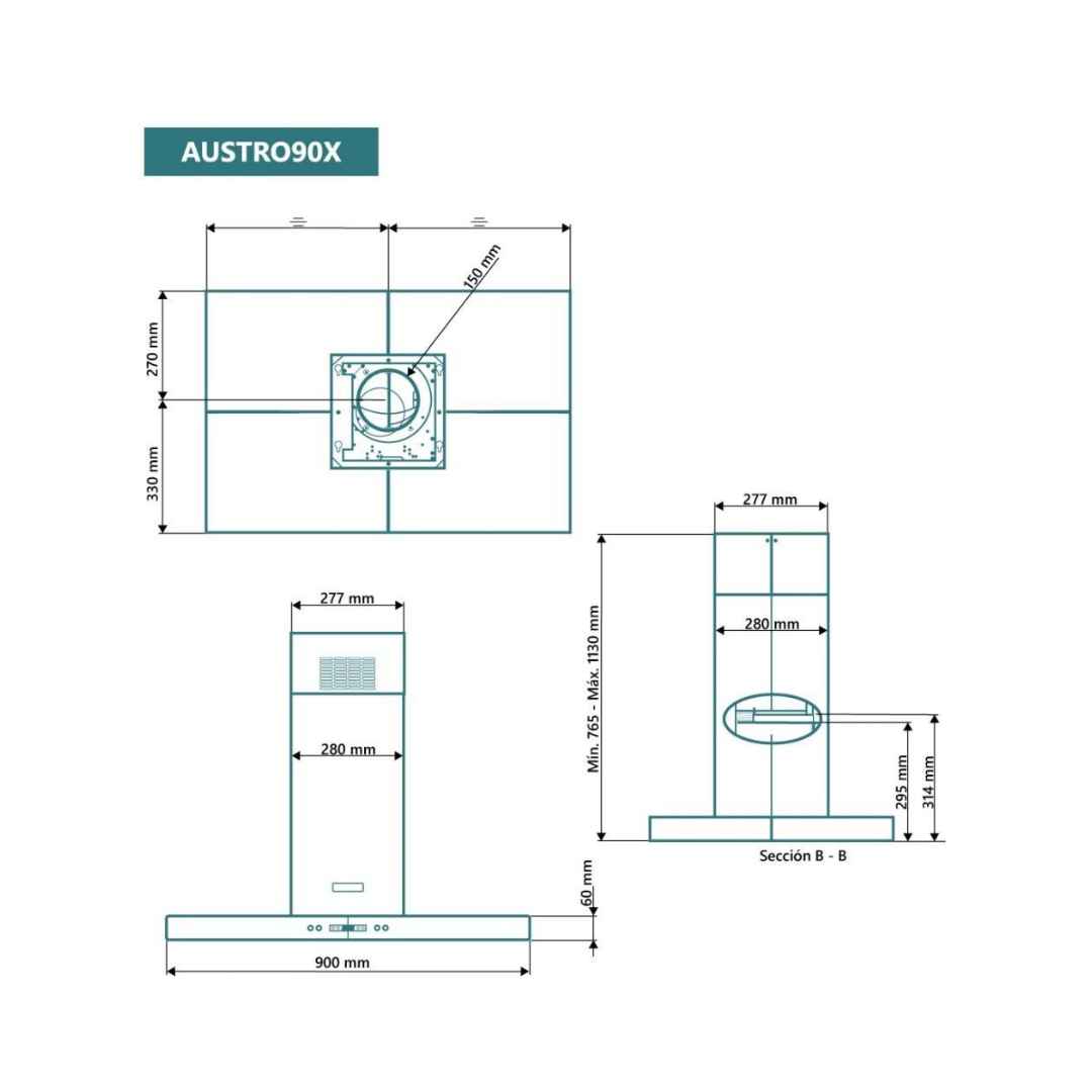 - Capacidad de extracción mín-540 m3/h, máx-540m3/h, turbo- 620 m3/h