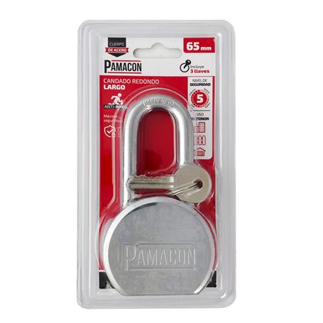 CANDADO REDONDO LARGO 65MM DE ACERO PAMACON