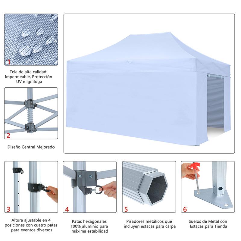 - Conjunto de pared lateral de tela CPAI 84 ignífiga de poliéster 300D, 1 pared con 2 puertas con cremalleras dobles + 3 paredes laterales.