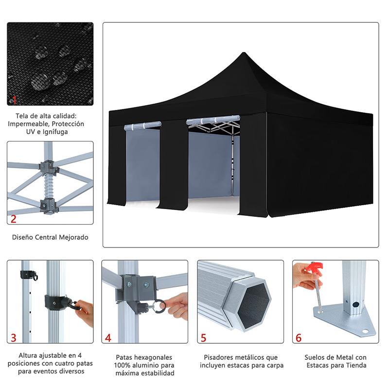 - Conjunto de pared lateral de tela CPAI 84 ignífiga de poliéster 300D, 1 pared con 2 puertas con cremalleras dobles + 3 paredes laterales.