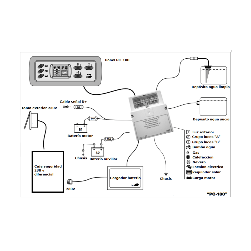 - Control de tanque de aguas sucias lleno (sólo indica cuando está lleno).