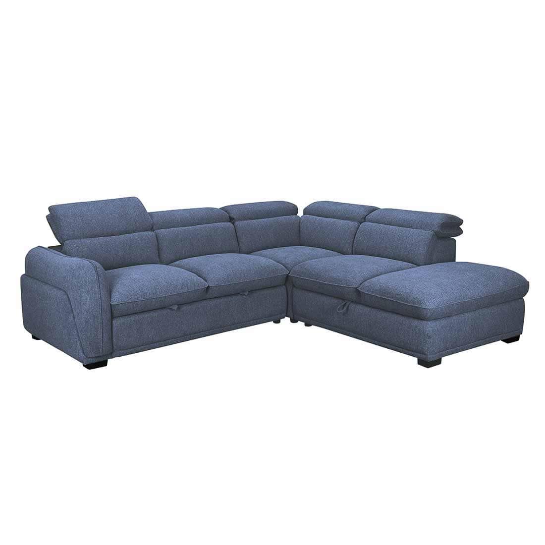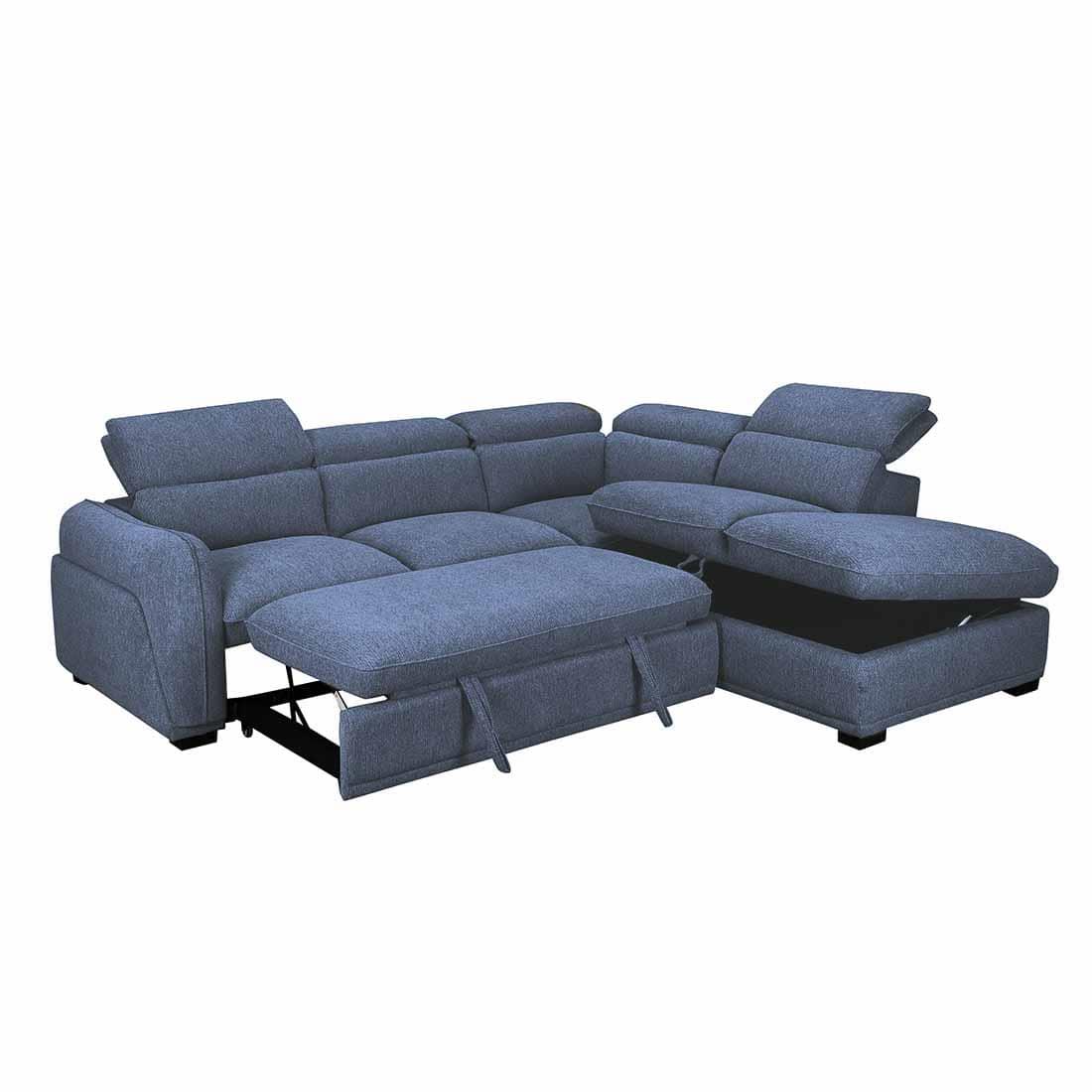 El sofá Venice, se convierte en un sofá con cama extraíble y cabezales italianos que puede ajustar manualmente para mayor comodidad. Este modelo incluye un chaiselongue con arcón, ideal para almacenar lo que desees.