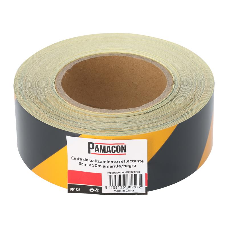 CINTA DE BALIZAMIENTO REFLECTANTE AMARILLA/NEGRO 5CMX50M PAMACON