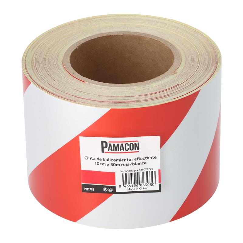 CINTA DE BALIZAMIENTO REFLECTANTE ROJA/BLANCA 10CMX50M PAMACON