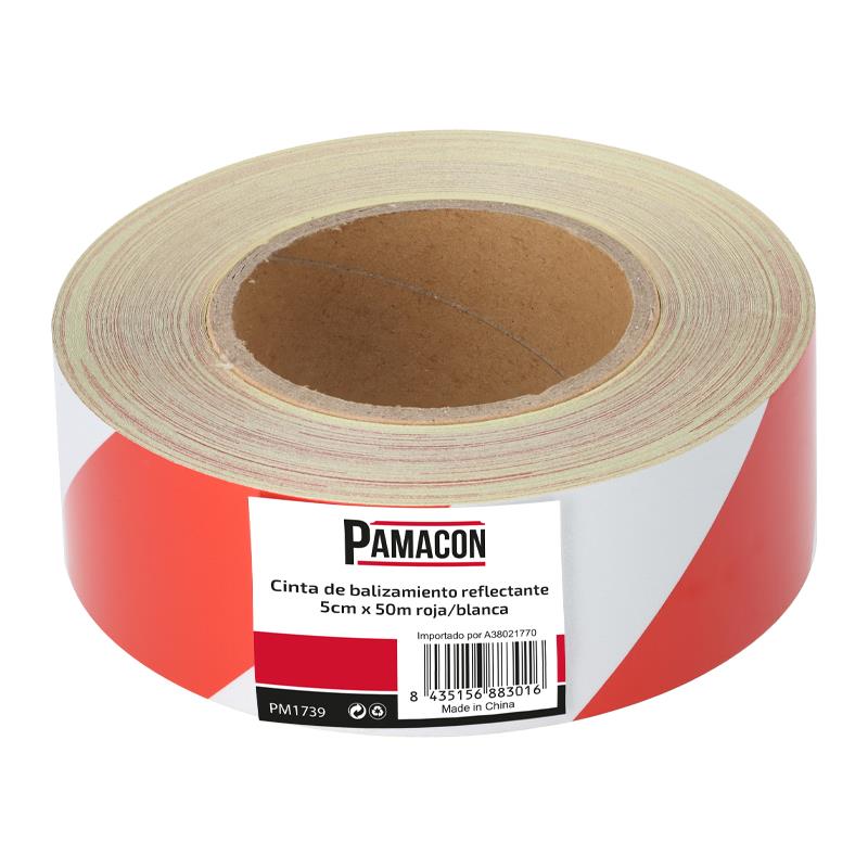 CINTA DE BALIZAMIENTO REFLECTANTE ROJA/BLANCA 5CMX50M PAMACON