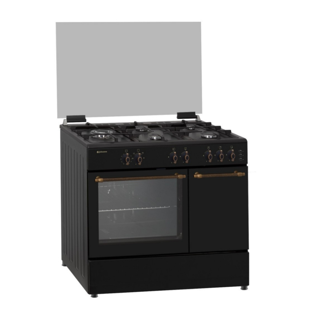 COCINA DE GAS 5 ZONAS 90CM RUSTICA NEGRA C/PORTABOMBONA JOHNSON