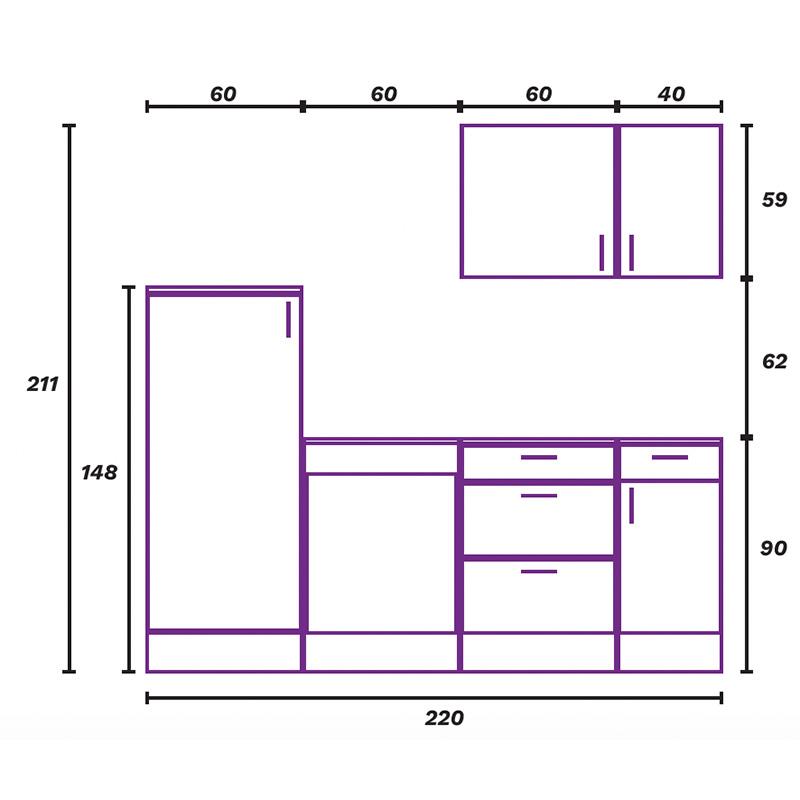 COCINA ESQUINERA KIT BLANCA KIRA 220+220CM MOMI