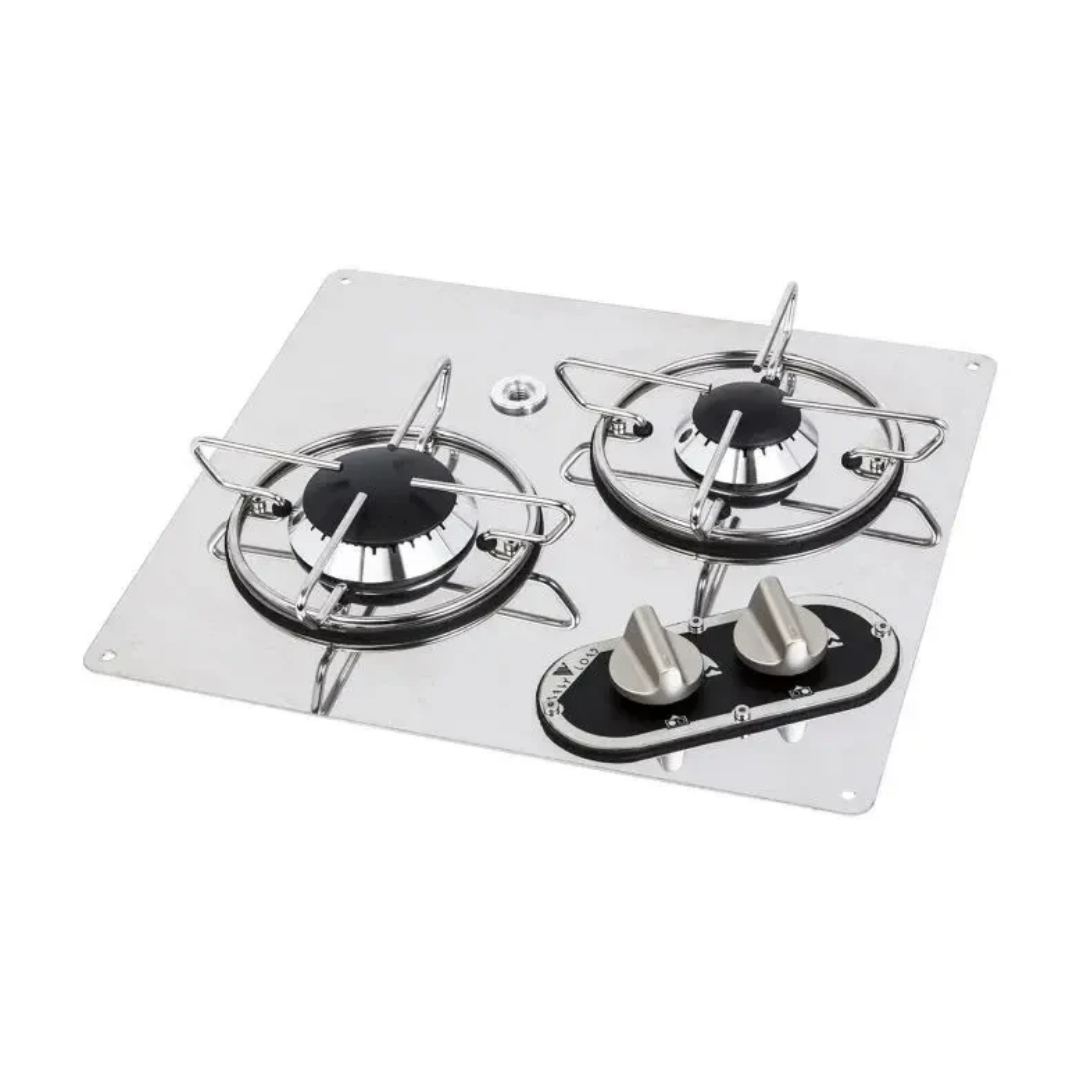 La Cocina 2 Fuegos Inox Carbest es la elección perfecta para equipar tu camper o autocaravana con un sistema de cocina eficiente y elegante. Diseñada en acero inoxidable pulido, combina durabilidad y un diseño moderno, ideal para espacios reducidos donde la funcionalidad y la estética son clave.