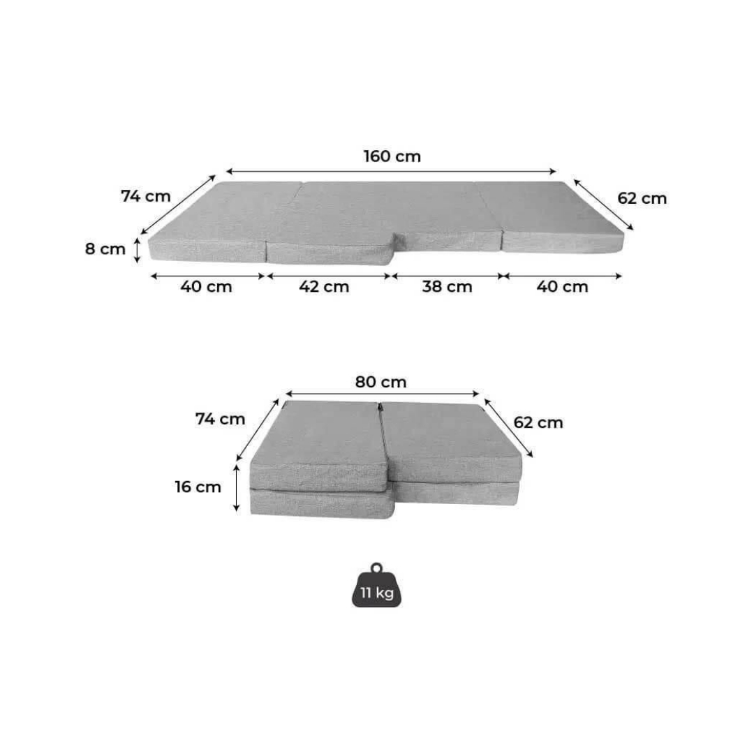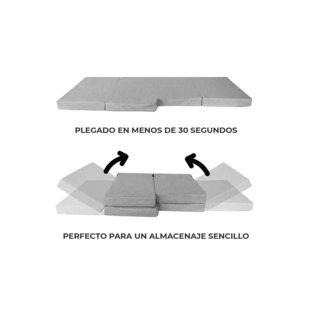 - Cama plegable de «2 plazas» con fundas grises extraíbles.