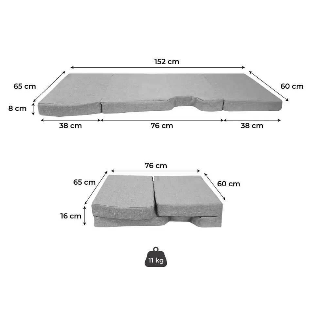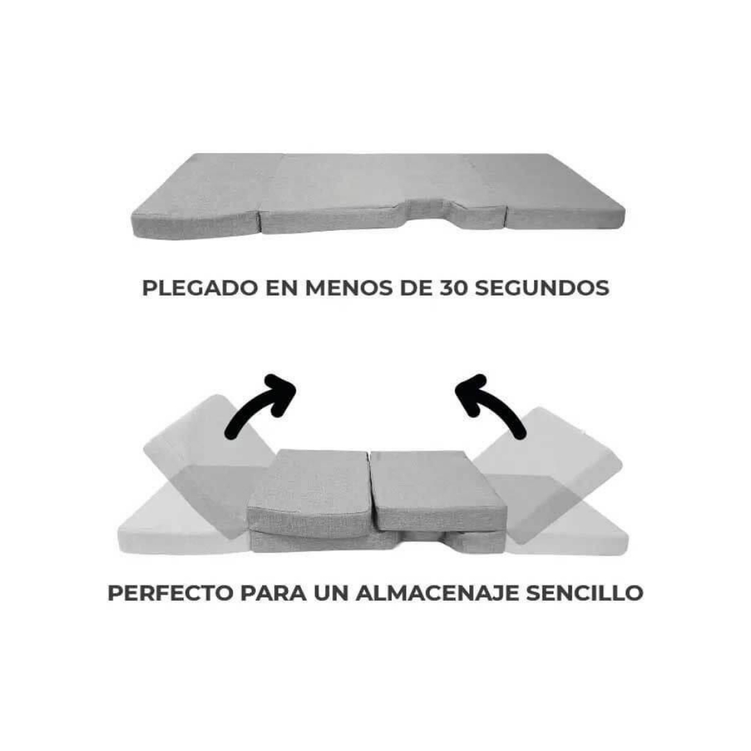 - Colchón de 8 cm de espesor: Fabricado en espuma fría de 7 cm de alta calidad (densidad 25 kg/m³), con un tablero de MDF de 1 cm para una mayor estabilidad.