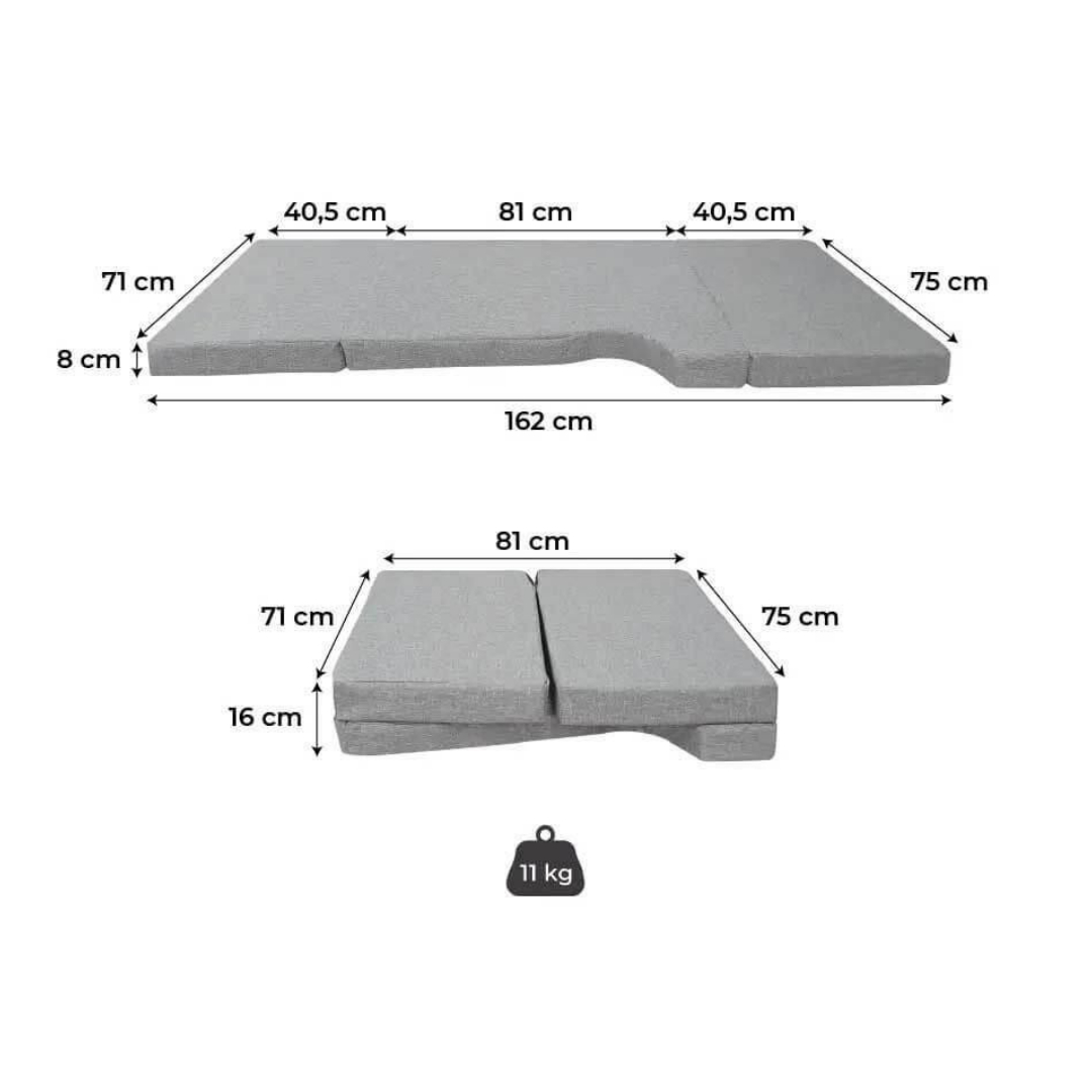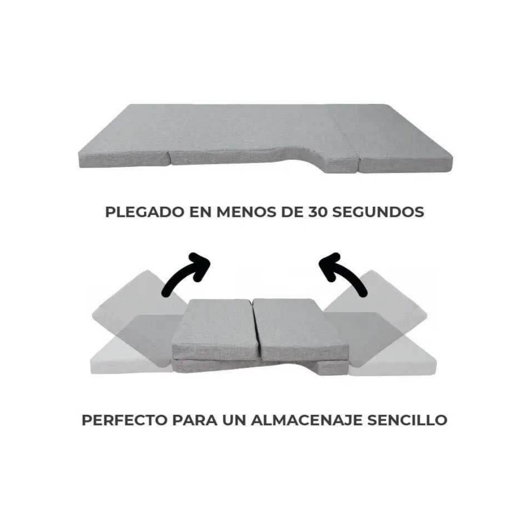 El colchón plegable o cama delantera está dividido en 3 partes, para así poder plegarlo y conseguir una mayor facilidad a la hora de transportarlo e intentar reducir el máximo espacio posible.