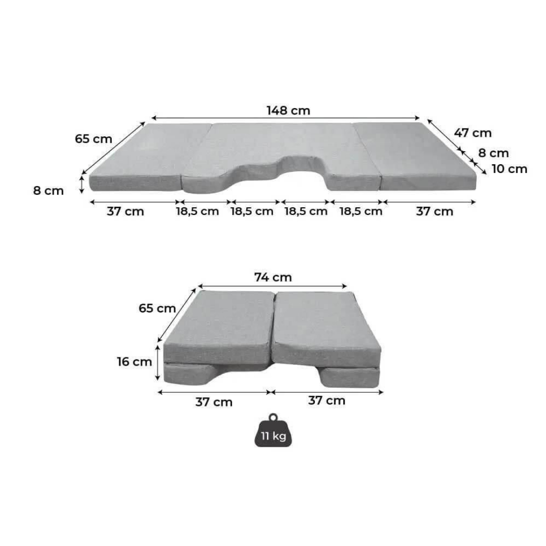 - Colchón de Alta Calidad: Fabricado con espuma fría de 7 cm de grosor (densidad 25 kg/m³) y un tablero MDF de 1 cm, ofrece soporte y comodidad.