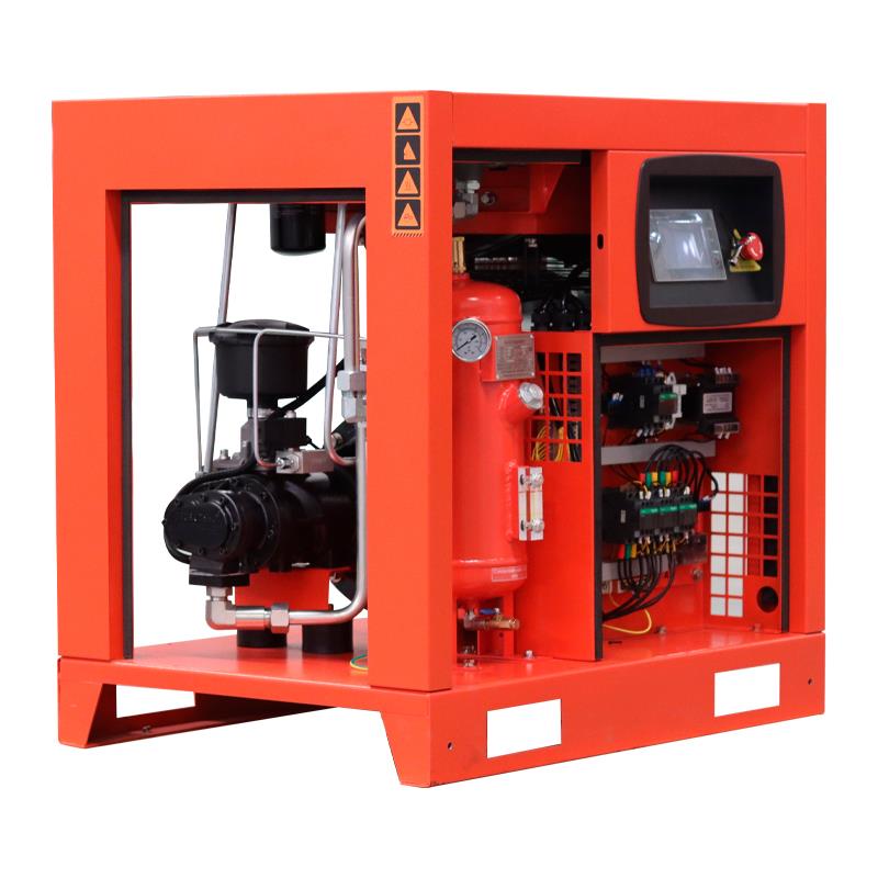 - Compresor de tornillo rotativo de accionamiento directo, diseñado para uso industrial continuo de alta capacidad.