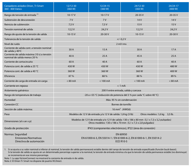 - Convertidor Victron Orion-Tr Smart 12/24-15A DC-DC no aislado con Bluetooth Smart integrado