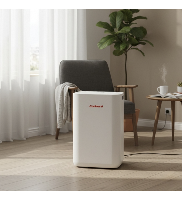 El deshumidificador CDWG13 de Corberó es una solución eficiente y moderna para reducir la humedad ambiental en estancias interiores, mejorando el confort y la calidad del aire en el hogar.