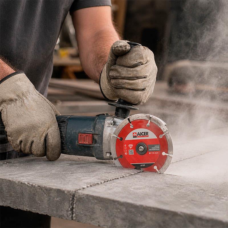 - Disco diamante segmentado, diseñado para ofrecer un corte rápido y eficiente en distintos materiales.