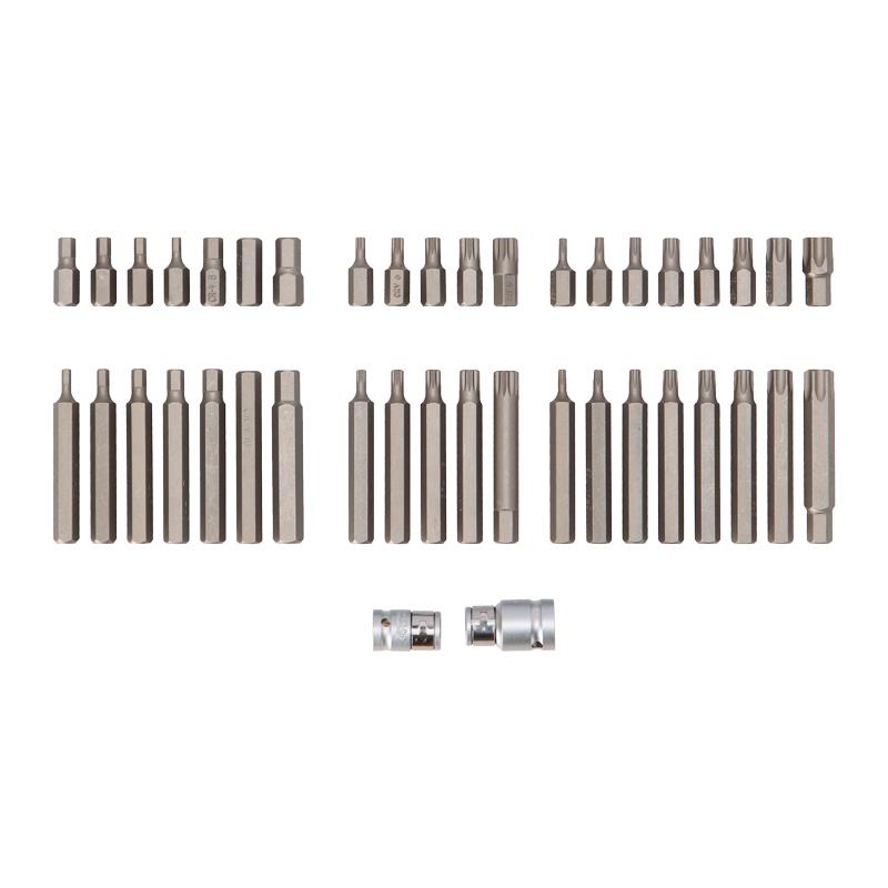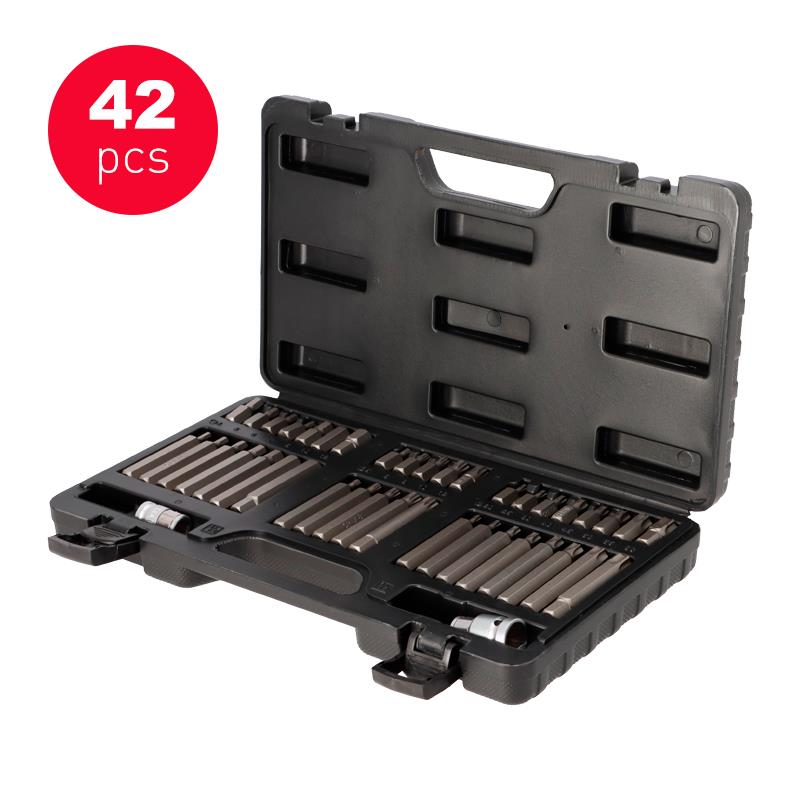 - Maletín con 42 pcs puntas hexagonales, 12 cantos y TORX.