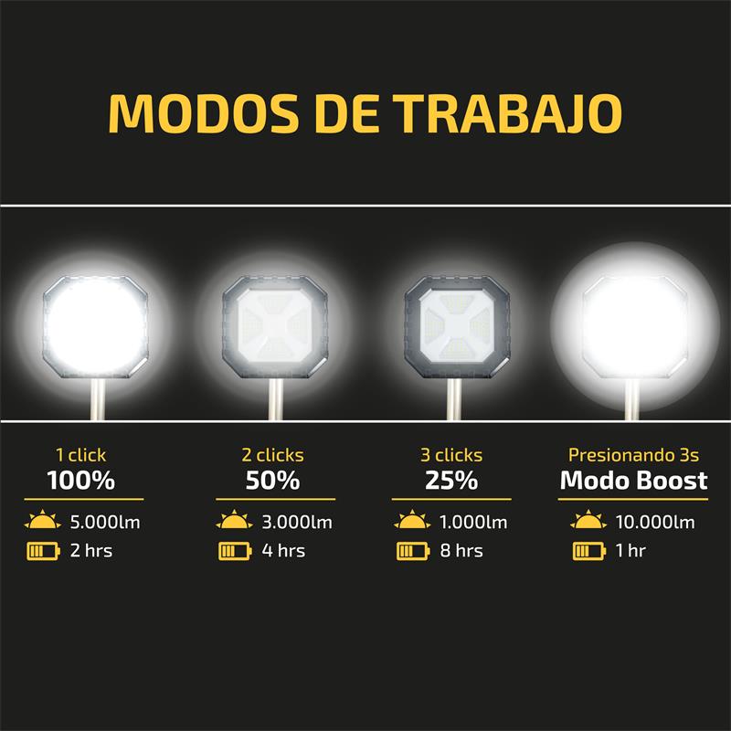 - Tres niveles de brillo: 5.000 / 3.000 / 10.000 lúmenes.