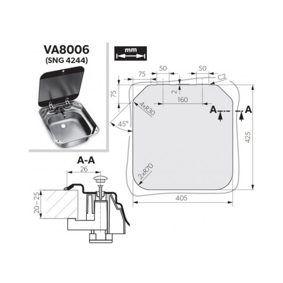 FREGADERO CON TAPA SENO DOMETIC VA8006 DOMETIC