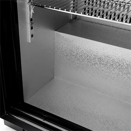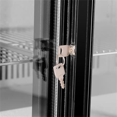 - Puerta de cristal doble, esto permite a los clientes ver rápidamente qué bebidas se sirven y permite a los camareros comprobar el stock de un vistazo sin abrir las puertas.