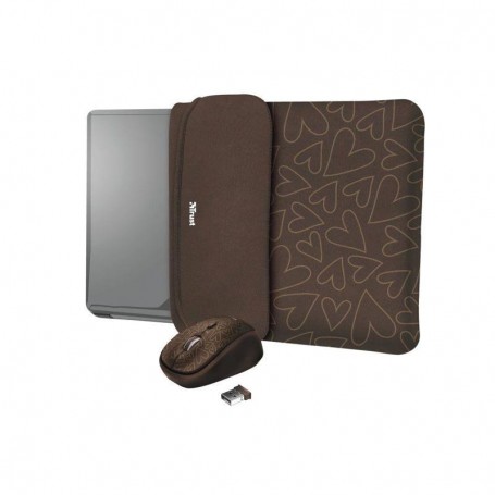 FUNDA+RATON INALAMBRICO CORAZONES PARA PORTATILES HASTA 15.6″ MARRON TRUST (MBJ)