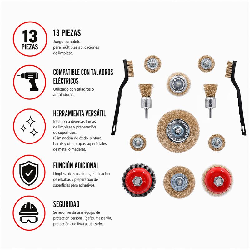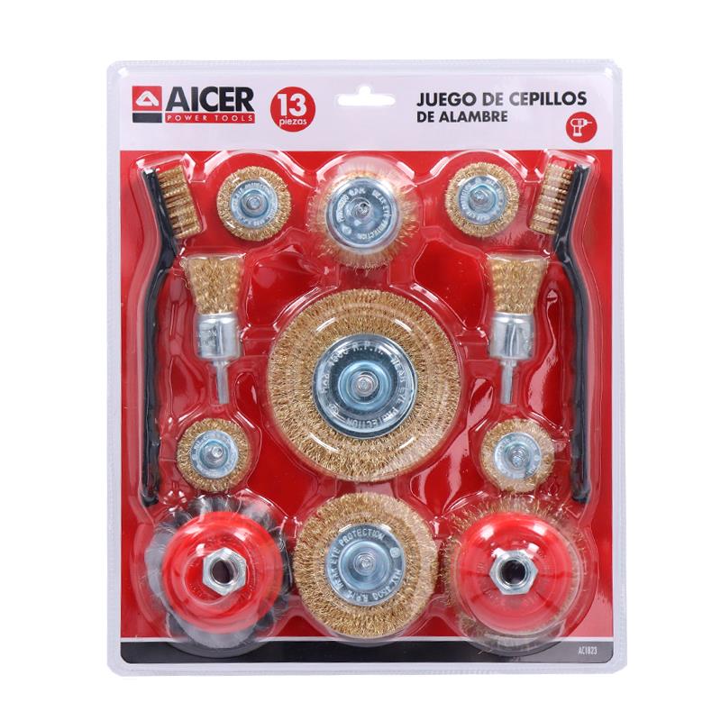 - Juego de cepillos de alambre AICER 13 PCS, ideal para trabajos de limpieza, desbaste y preparación de superficies.
