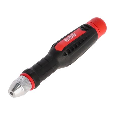 - El mandril de tornillo de bloqueo de precisión mantiene las limas de forma segura en su lugar.
