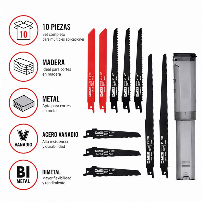 JUEGO SIERRAS SABLE 10 PCS AICER AC1825 JUEGOS DE SIERRAS DE SABLES