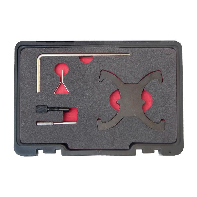 - Fabricado para la correcta reparación y sustitución de todos los elementos del sistema de distribución, desde la correa a los piñones del árbol de levas y el cigüeñal.