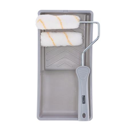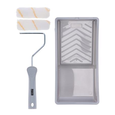 - Excelente kit de pintura con rodillo y bandeja.
