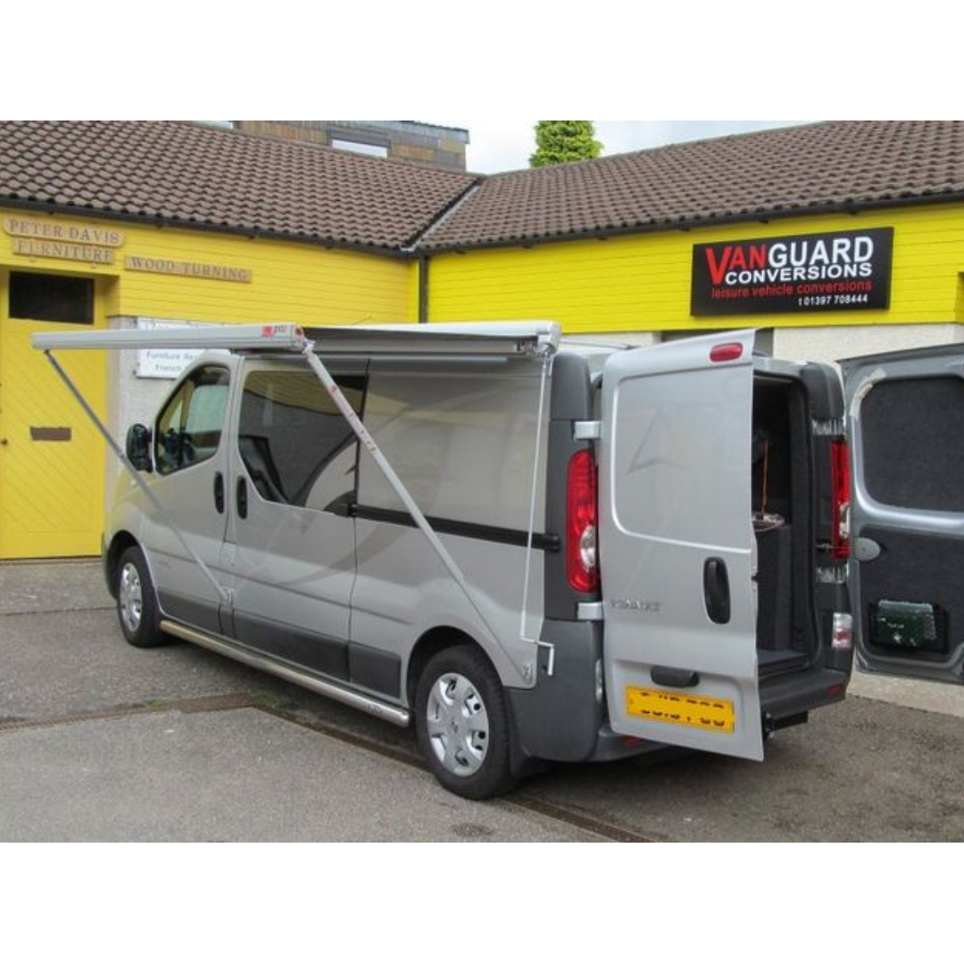 - Sujeta la pata del toldo contra el lateral del vehículo si no es posible dejarlo caer verticalmente al suelo.