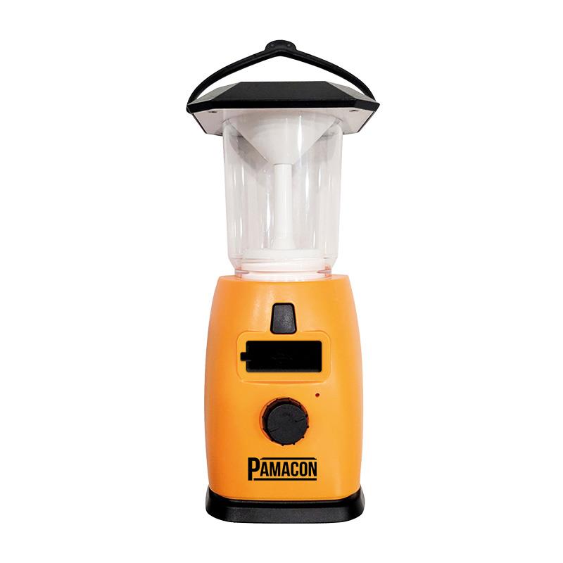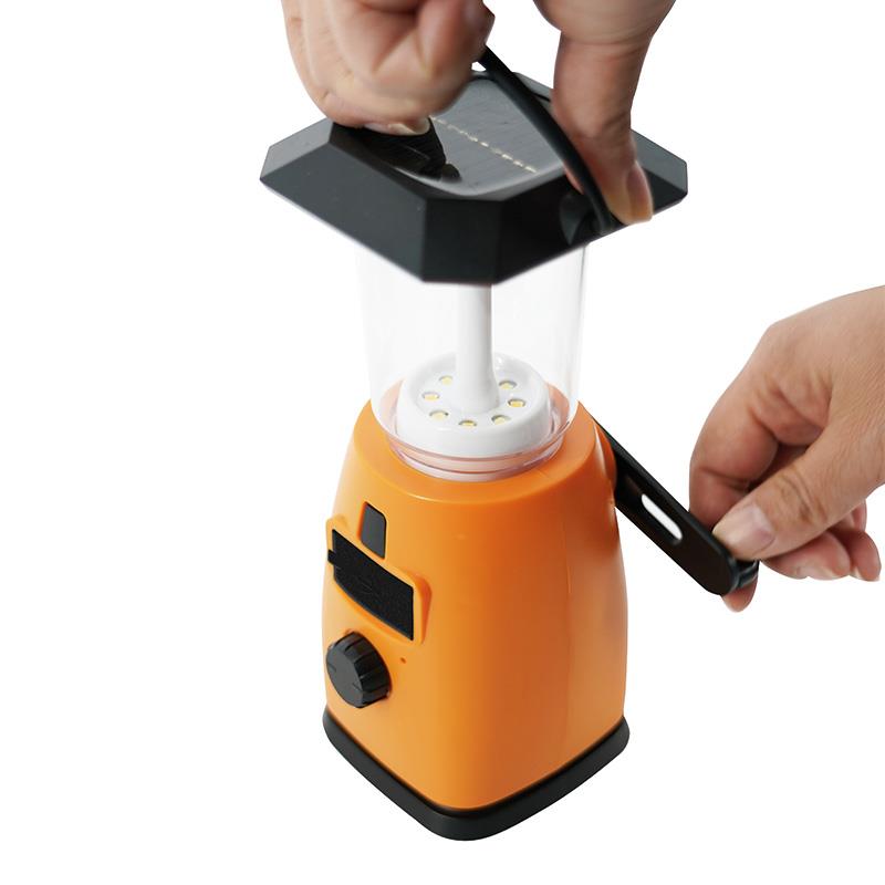 - Luz de camping LED con 4 modos de carga: solar, dinamo, USB o pilas AA (no incluidas).