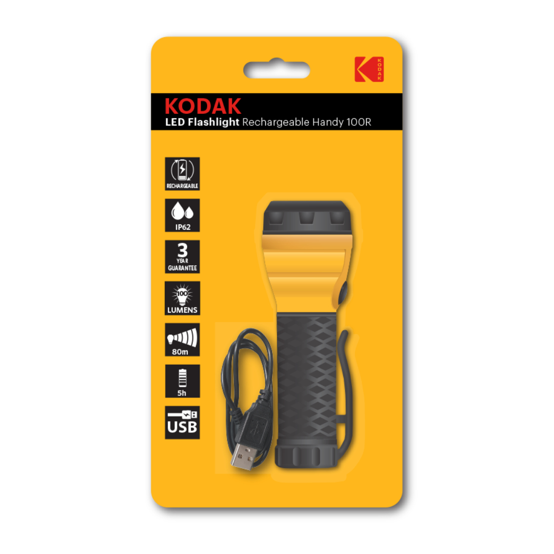 ¡La linterna LED recargable KODAK Handy 100R es una pequeña gran luz que proporciona un increíble nivel de brillo y es recargable por USB! Ideal para acampar, senderismo, pesca, correr, pasear perros, cortes de energía y en emergencias.