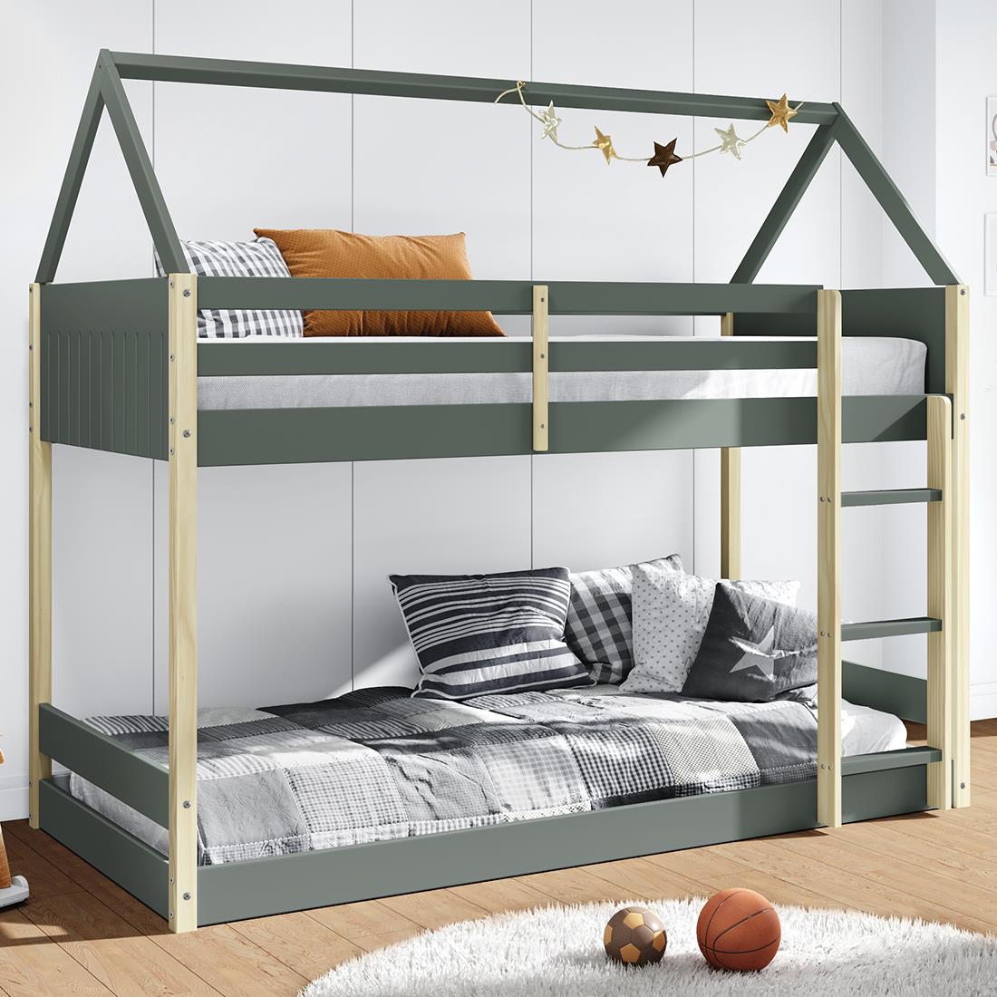 La litera casita Valka se distingue por su originalidad, presentando una cama baja que promueve la independencia de los niños y una cama en altura pensada para los mayores, convirtiendo el dormitorio en un lugar divertido y versátil. Su diseño unisex y atemporal se integra a la perfección con los colores disponibles que puedes elegir, ambos ideales para complementar cualquier estilo de decoración en la habitación.