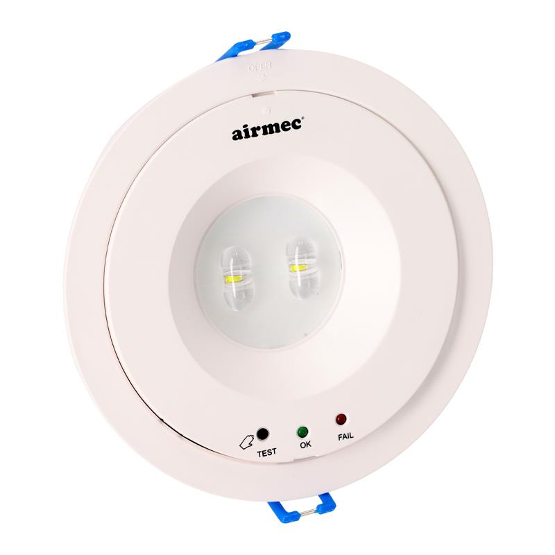 Luz de emergencia AIRMEC, modo de instalación en superficie o empotrado.