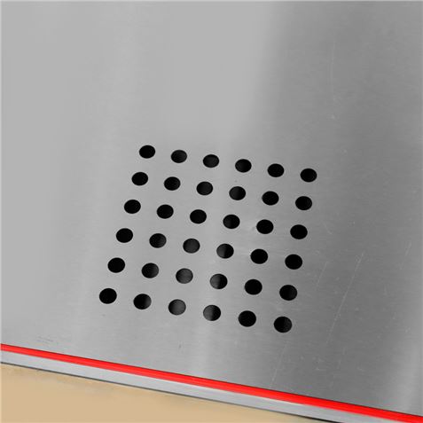 - Estructura exterior en acero inoxidable, resistente y fácil de limpiar.